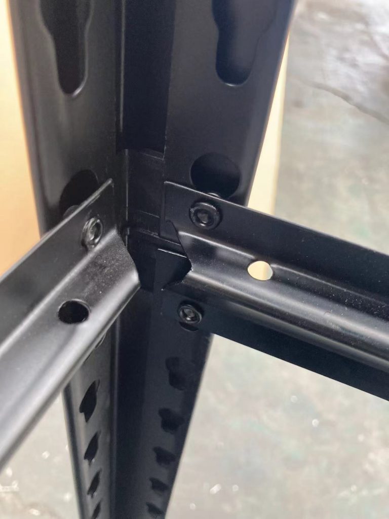 The rivet holes are on the inner side of the column,Workers need to reach into the shelves to operate, which may be inconvenient for narrow space groups.
